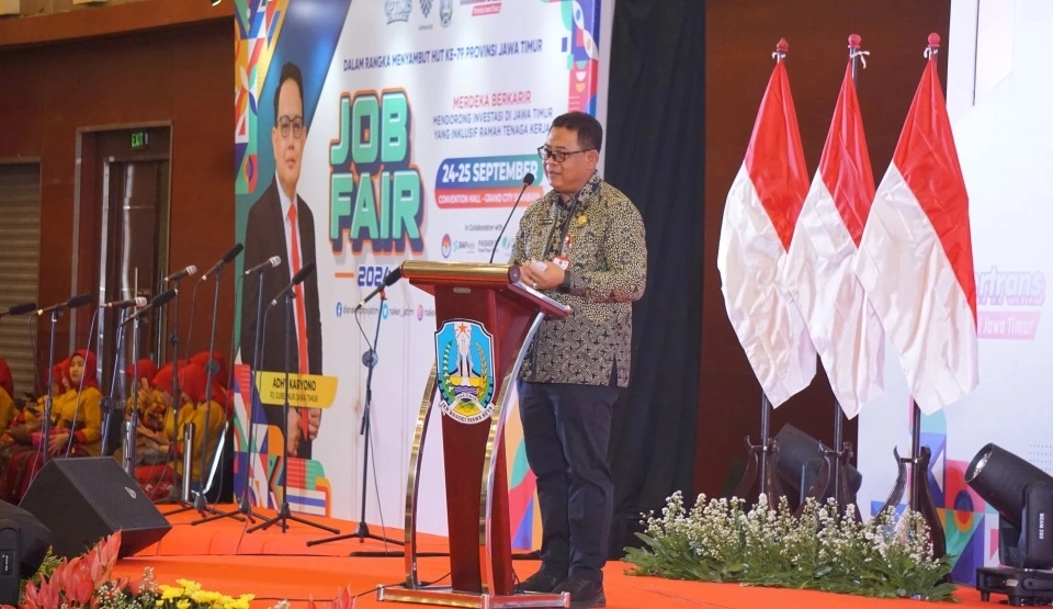 Naker.Berita-Surabaya. Penjabat (Pj) Sekretaris Daerah Provinsi Jawa Timur Bobby Soemiarsono membuka Job Fair 2024 di...